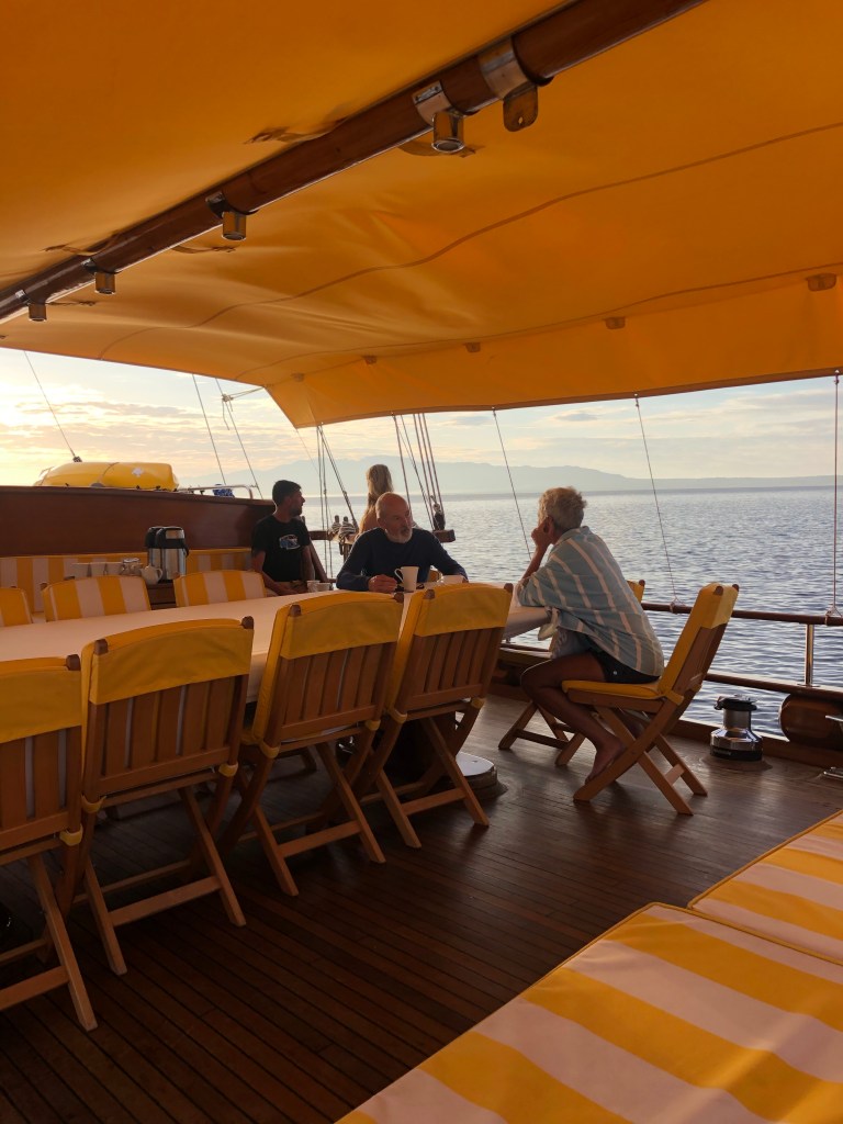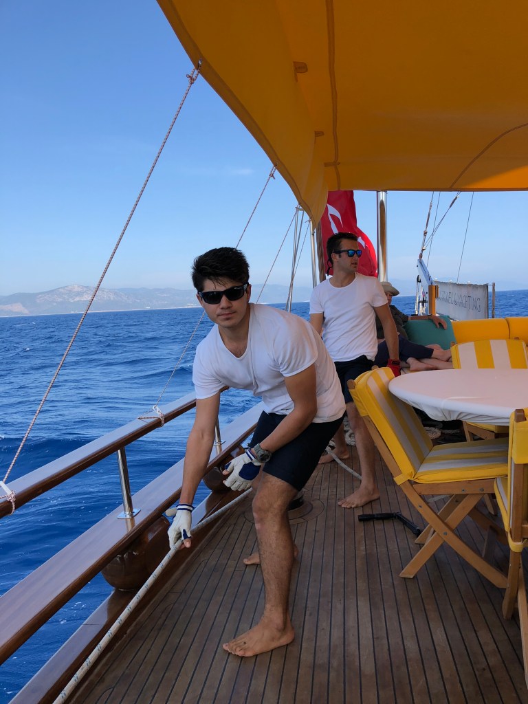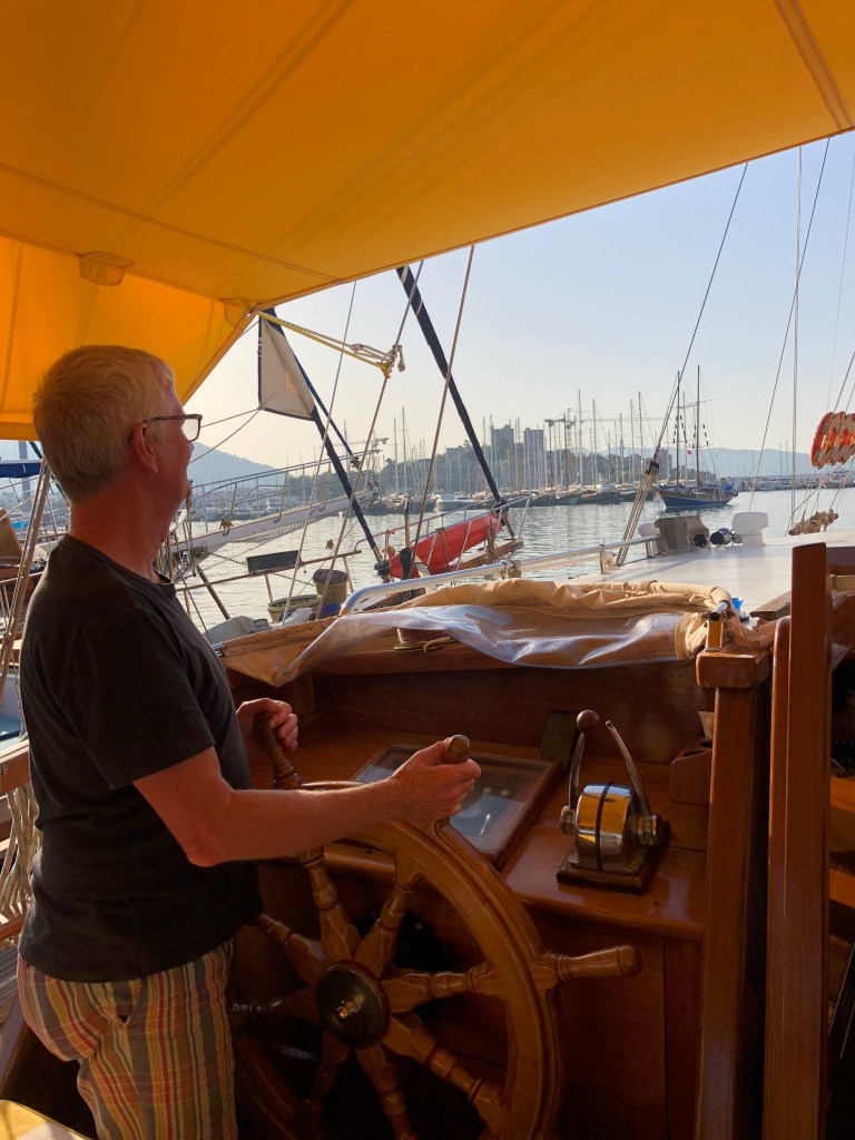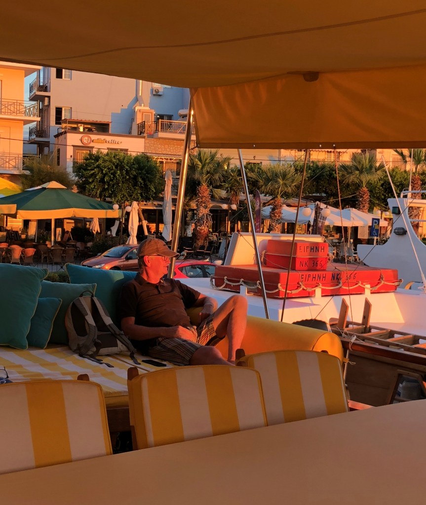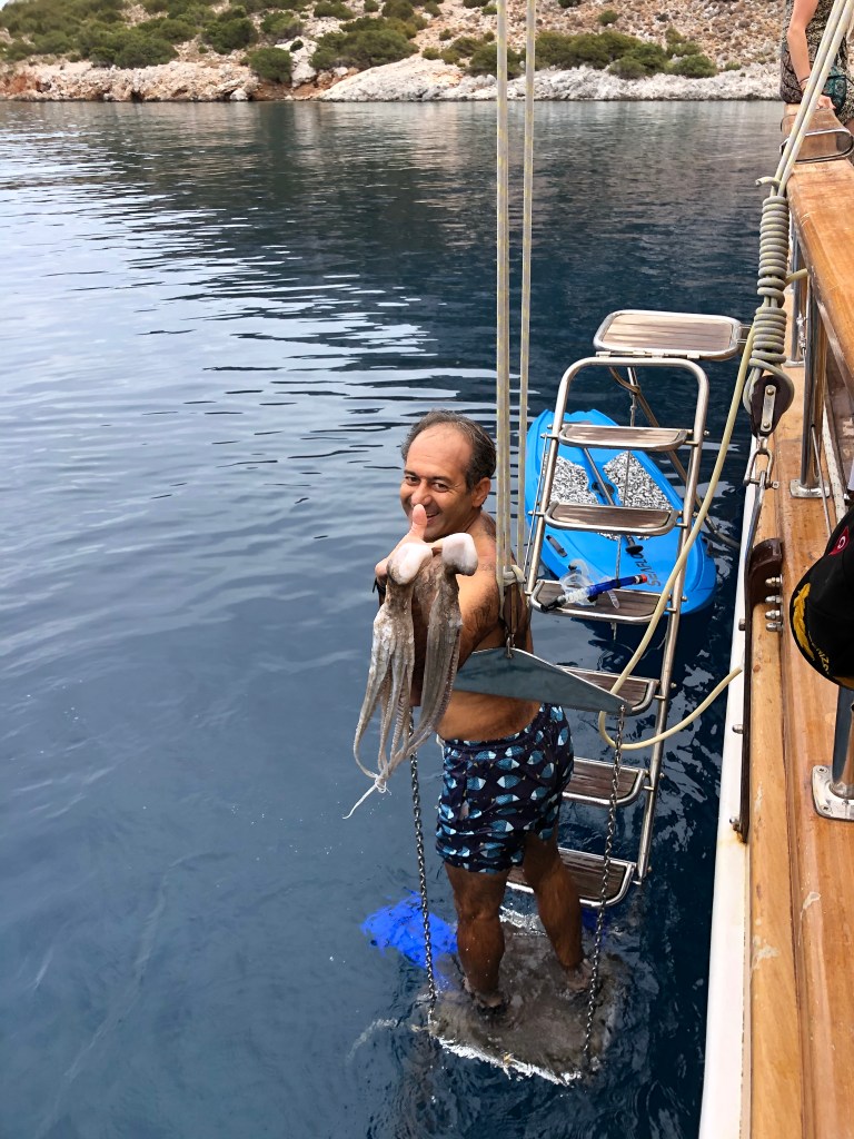 After a couple of weeks on Greek islands we joined a boat charter out of Bodrum which took us to smaller, less accessible islands and also along the coast of Turkey. Boat trips like this can be a lottery (as we discovered on the Geriatric Pearl last year). When sharing every meal and spending a week in a reasonably confined space, travelling companions can make or break it. Well we hit the jackpot! We were lucky enough to spend the week with two fabulous Irish couples who adopted Roger as one of their own. Nothing like a few Paddies to liven things up! A brilliant young couple arrived from London at 10pm on the first night, to find the boat totally dark and silent. It wasn’t ’til next morning they discovered they were being held captive by a boatload of oldies. Too late to abandon ship! Turns out they were great sports and a heap of fun, as were our new German friends Sanya and Jens. Thanks to a few boisterous after dinner parties, we now have some great new friends and an international Spotify playlist featuring everything for German house music to Irish ballads, Swedish beats, INXS and Crowded House.