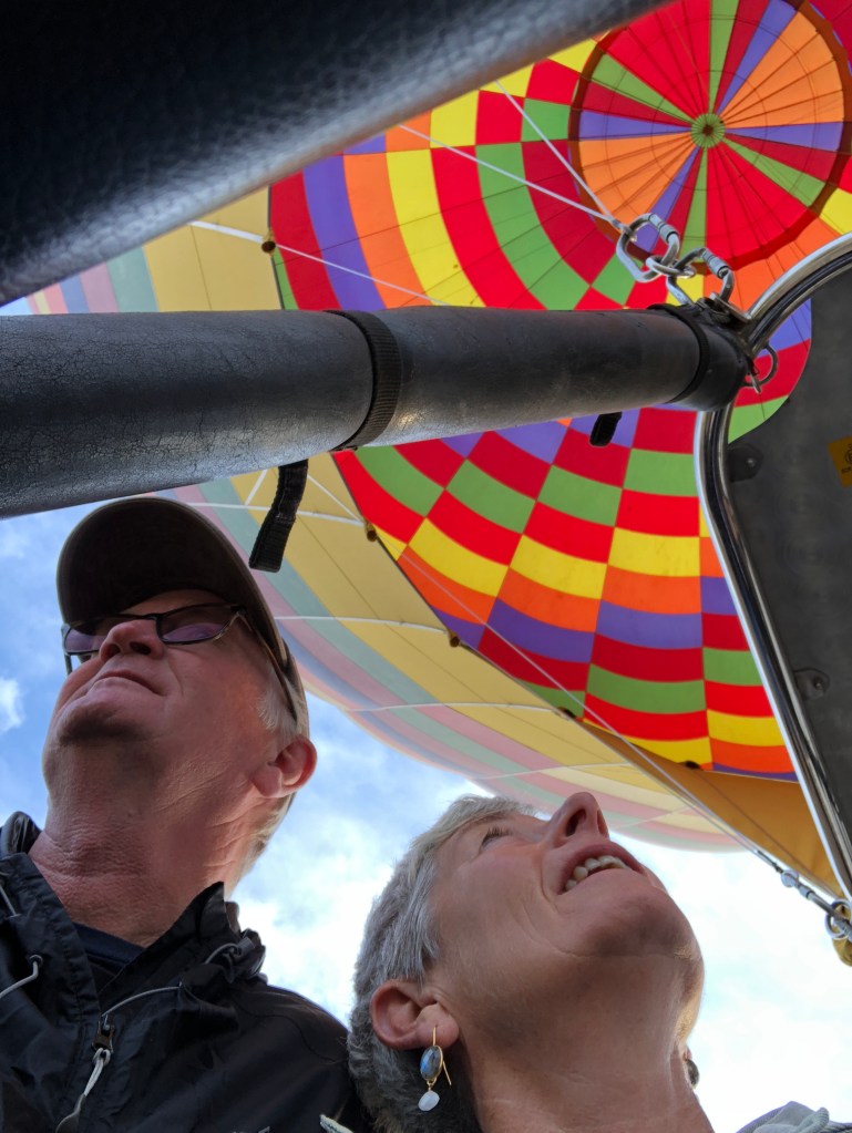 We did a hot air balloon in the early morning, humming ‘Up, up and away…’ What a spectacular way to start the day and a real highlight of our trip. As the sun came up we watched lifeless shells transformed into the roaring spheres we were about to entrust ourselves to. Another breathtaking and a wonderful memory for the rest home.