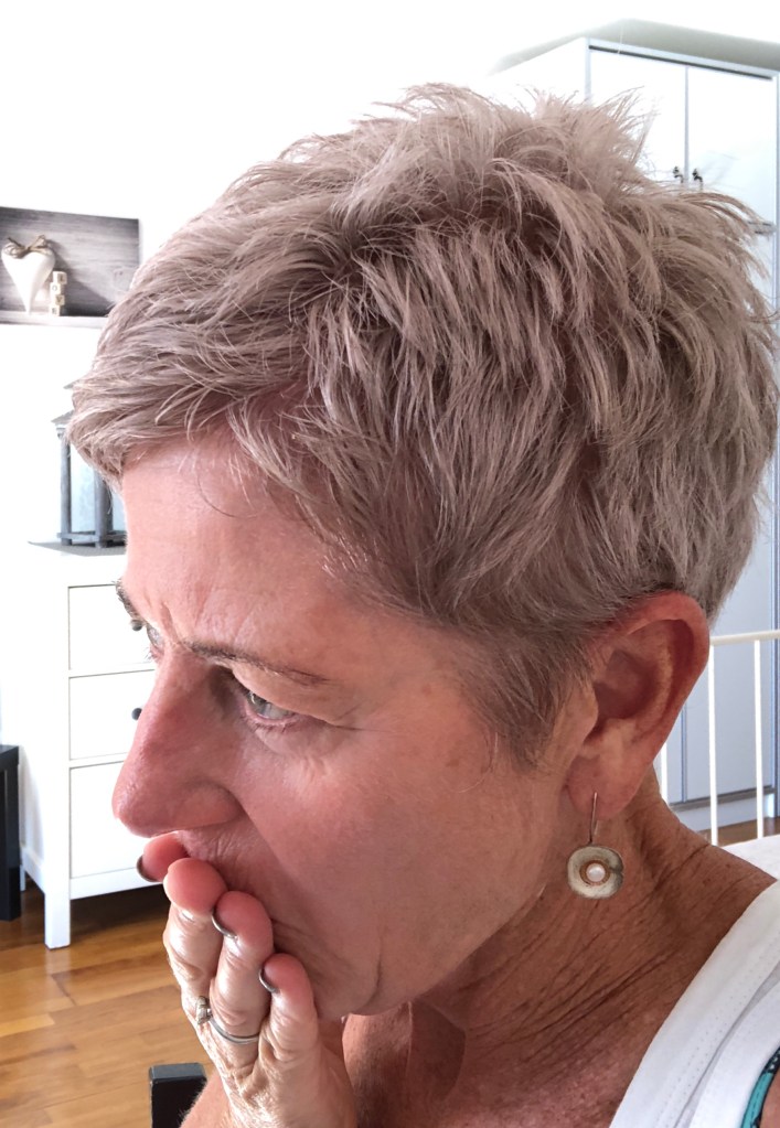 This morning in the full light of day, all was revealed. Put it this way, if I was on a menu it’d read something like ‘rhubarb coulis meets Turkish Delight’! Shades of silver and more than a hint of pink. The receptionist at the hotel did a double take at the dramatic change and no doubt has me down as a middle-aged crim on the run. Ah well, plenty of time to grow it out.