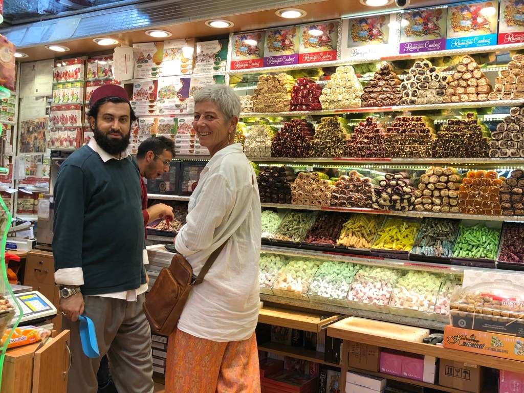 One of our most memorable experiences was a visit to a hamam in a 15th century mosque. We weren’t sure what to expect, but experienced a full-on Turkish bath, where men and women have separate sessions. After being doused in warmish water, you lie out on a hot marble stone for a bit, then are scrubbed and bathed by an attendant, in an ancient ritualistic way. More than a little weird to start with, but we shed a good few layers of skin and will never die wondering. Rog enjoyed having all his bits bathed and we both felt rejuvenated afterwards.